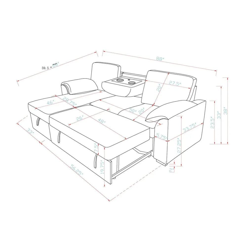 • Compact Dimensions: 88"L x 60"W x 38"H fit most living rooms.
