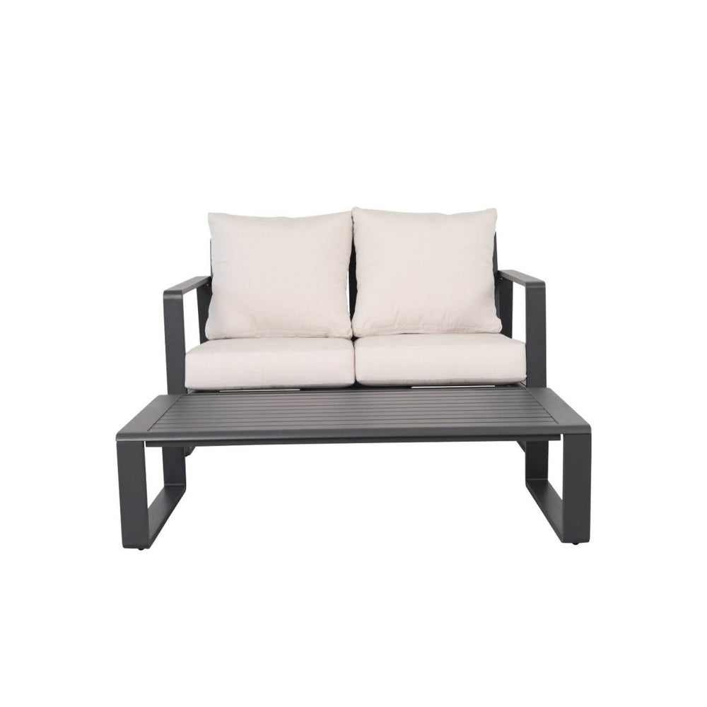 Experience a perfect blend of comfort and modern style with this elegant double sofa and coffee table set, featuring milky white American cloth cushions for a soft, breathable seating experience. The durable aluminum frame ensures long-lasting support while maintaining a sleek, lightweight design ideal for any living room or lounge area. The plush cushions provide cozy relaxation for two, while the matching rectangular coffee table offers ample space for drinks, books, and decorative accents. Together, they create a fresh, inviting atmosphere that brightens up your home and enhances your relaxation. Easy to maintain and effortlessly stylish, this set is perfect for enjoying everyday moments or entertaining guests. Refresh your space and elevate your comfort today.