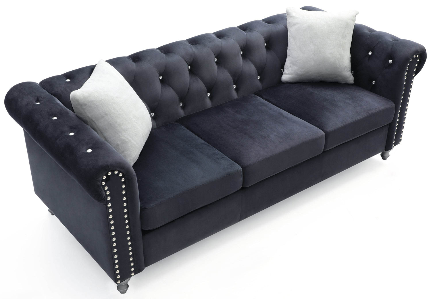 Velvet Upholstered Three-Seat Tufted Sofa With Nailhead Trim - Omega Lifestyles