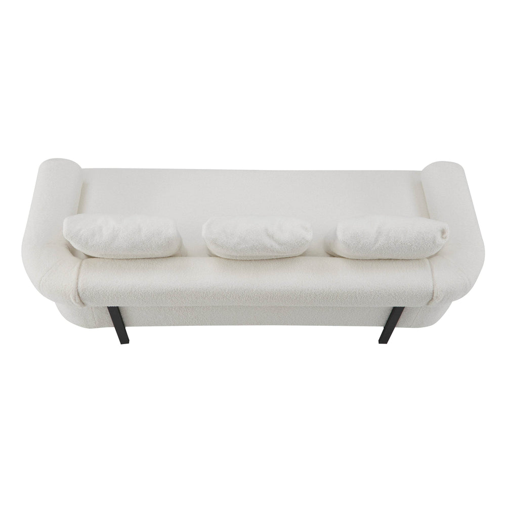 Spacious 3-seat beige sofa features soft boucle upholstery, solid wood frame, and steel legs for durability. Includes 3 plush pillows for added comfort, ideal for living rooms, bedrooms, or apartments. Easy assembly and versatile modern design complement various decor styles.