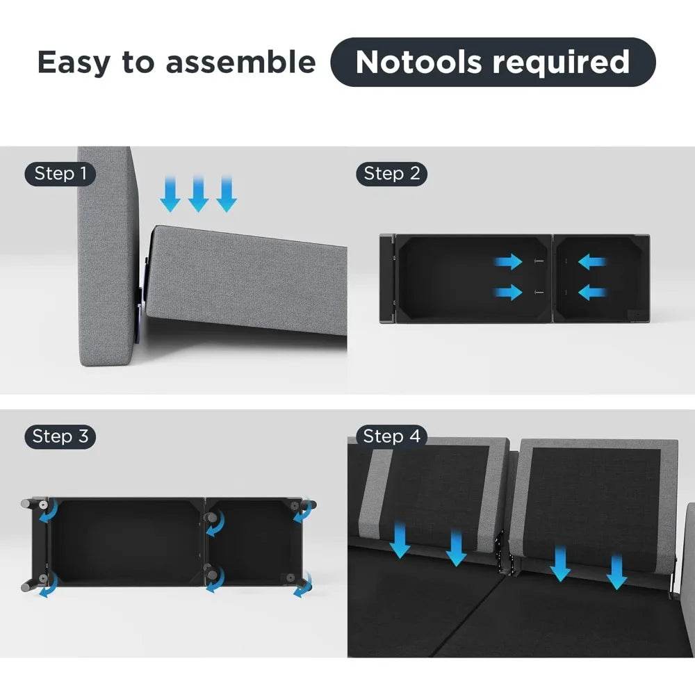 - Modern Design: Clean lines and light grey linen fabric complement any decor.