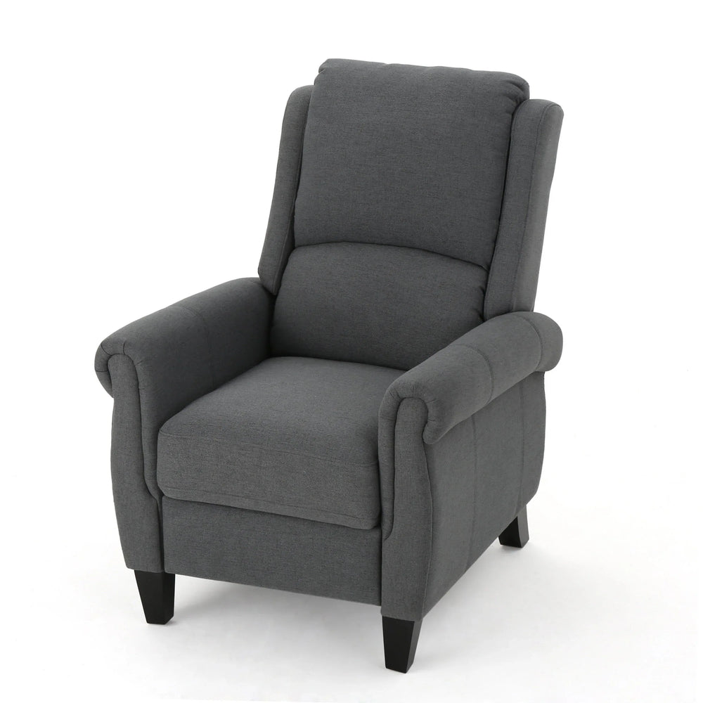 Charcoal Fabric Push Rack Recliner With Rubberwood Legs