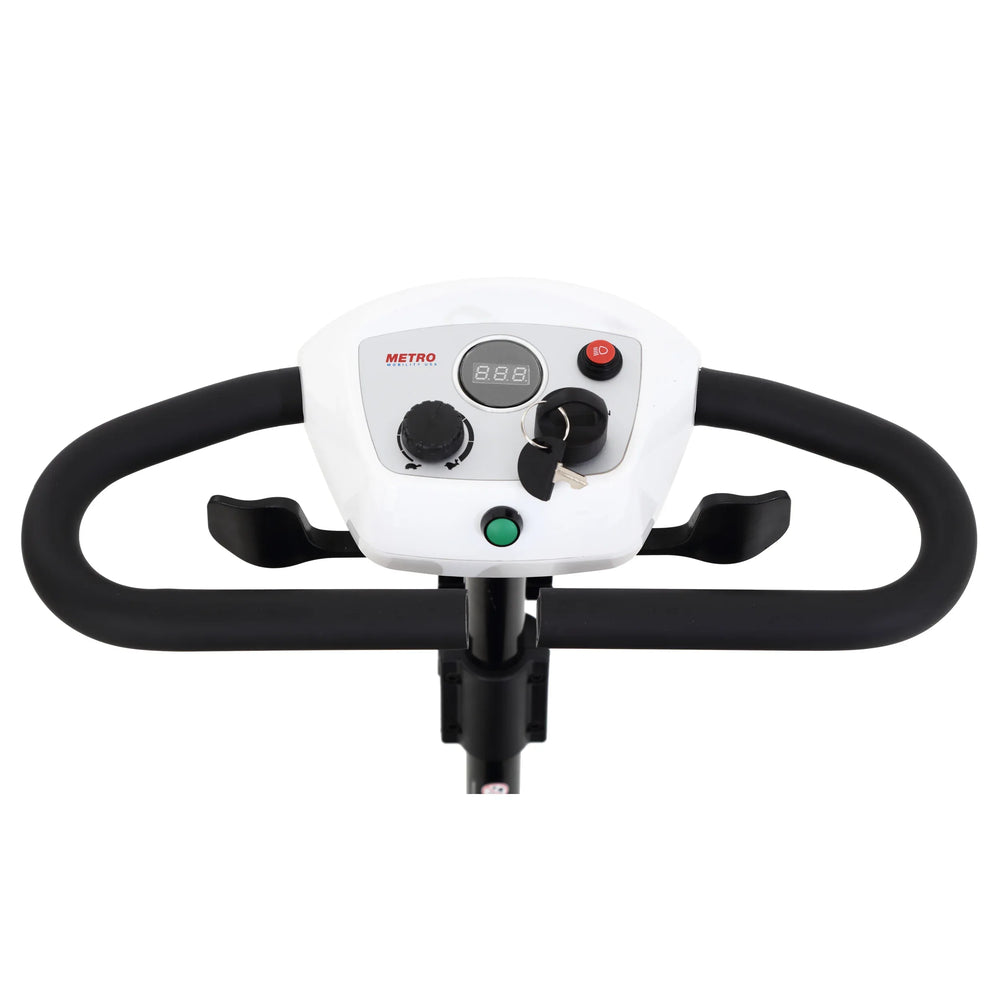 Navigate your world effortlessly with this four-wheel compact travel mobility scooter, engineered for adults up to 300 lbs. Powered by a robust 300W motor, it offers a smooth ride at speeds up to 4.97 mph and a generous range of 10 miles per charge. Its sleek white metal frame ensures durability while maintaining a lightweight profile at just 101 lbs, making transportation and storage easier than ever. Enhanced with rear suspension and solid 9"x3" front and rear tires, it delivers stable and comfortable handling on urban streets and gentle inclines up to 8°. The 360° swivel seat with flip-up armrests provides customizable comfort, while front and rear LED lights improve safety during evening rides. Simple fingertip controls and an intelligent electromagnetic brake system allow for confident and precise handling. Elevate your mobility and independence today.