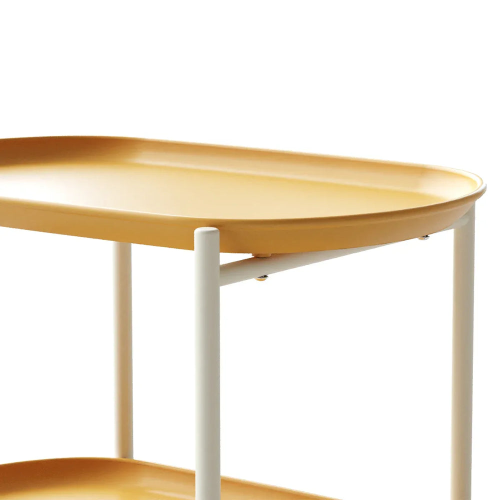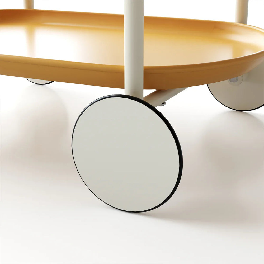 Bring style and functionality into your home with the Moon storage cart, featuring a vibrant antique yellow finish that brightens any room. Crafted with durable ABS, steel, natural beech wood, and PVC, this artsy mobile trolley offers double-layered shelves for ample storage, perfect for kitchen, living room, or sofa-side use. Its innovative T-shaped structure and secure hardware support a sturdy frame, while the design includes thoughtful safety features to prevent items from falling. Compact yet spacious, this small rectangular trolley measures 24.8 inches long, 16.5 inches wide, and 25.4 inches high, making it ideal for tight spaces. Smooth mobility lets you move it effortlessly, reducing strain by keeping essentials within easy reach. Elevate your organization and daily convenience with this versatile, eye-catching storage solution today.