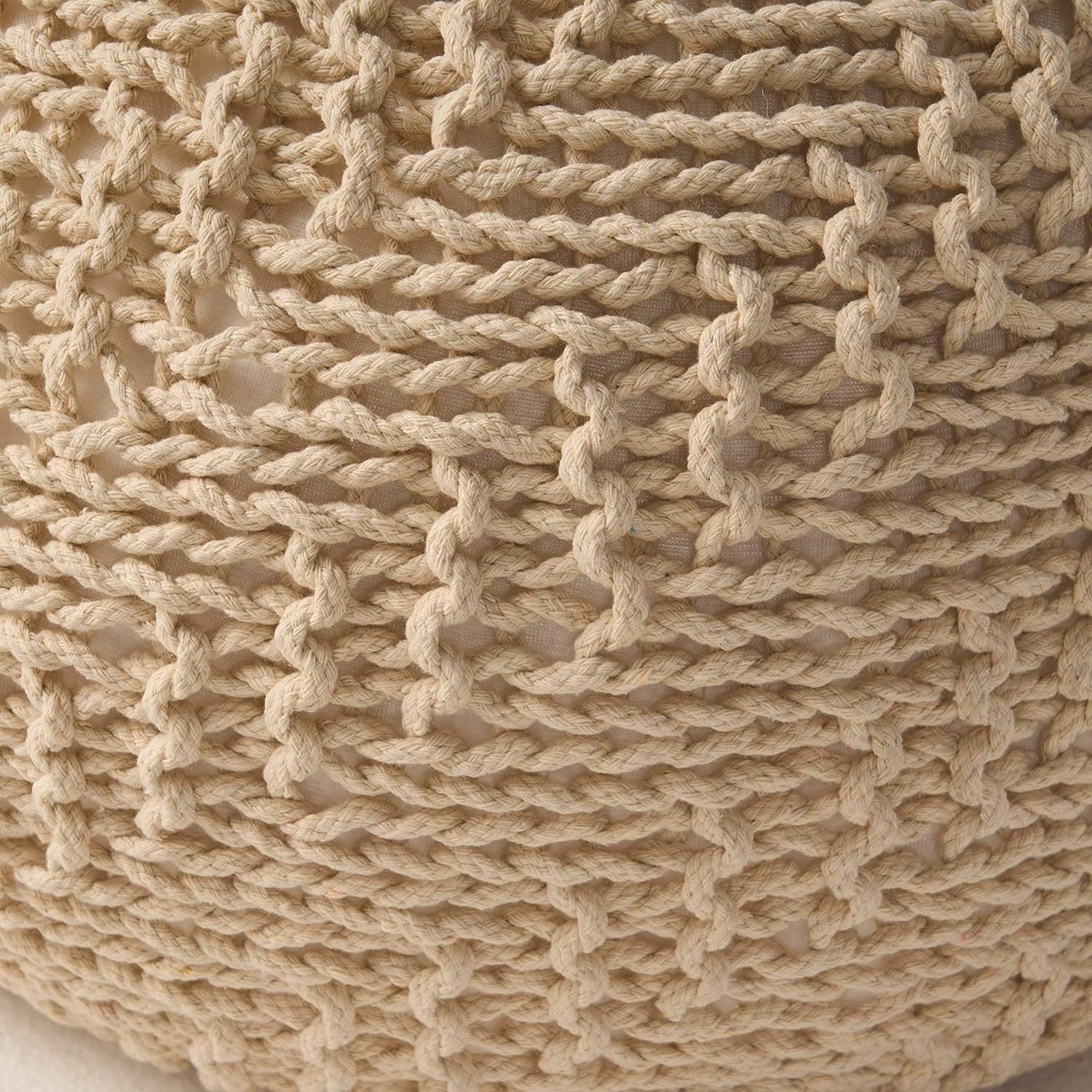 Add a touch of modern comfort and versatile seating to any room with the Hazel Pouf. Featuring a cozy knit weave cotton cover in a refreshing ivory shade, this pouf brings both texture and warmth to your home décor. Its sturdy rope-knit fabric ensures durability while offering a breathable, soft surface perfect for relaxing or putting up your feet. Compact yet roomy, the pouf measures 20 inches wide by 14 inches high, making it an ideal accent piece that blends seamlessly with minimalist and contemporary styles. Lightweight at just over 4 pounds, it’s easy to move around and requires no assembly — simply unpack and enjoy. Perfect as an extra seat, footrest, or decorative accent, the Hazel Pouf transforms your space with effortless charm. Elevate your relaxation and style today.