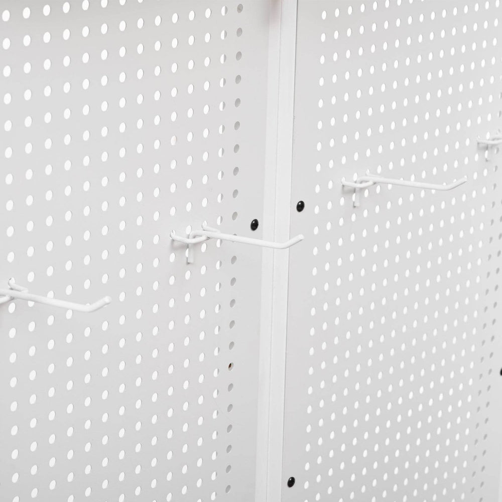 - Upper Hutch with Pegboard & 4 Hooks: Keeps tools organized and accessible.