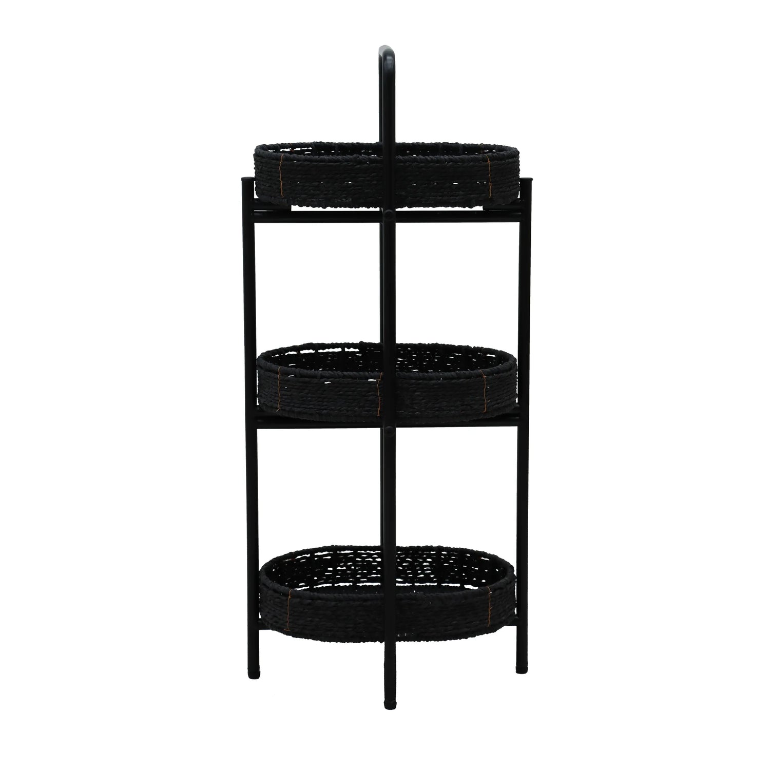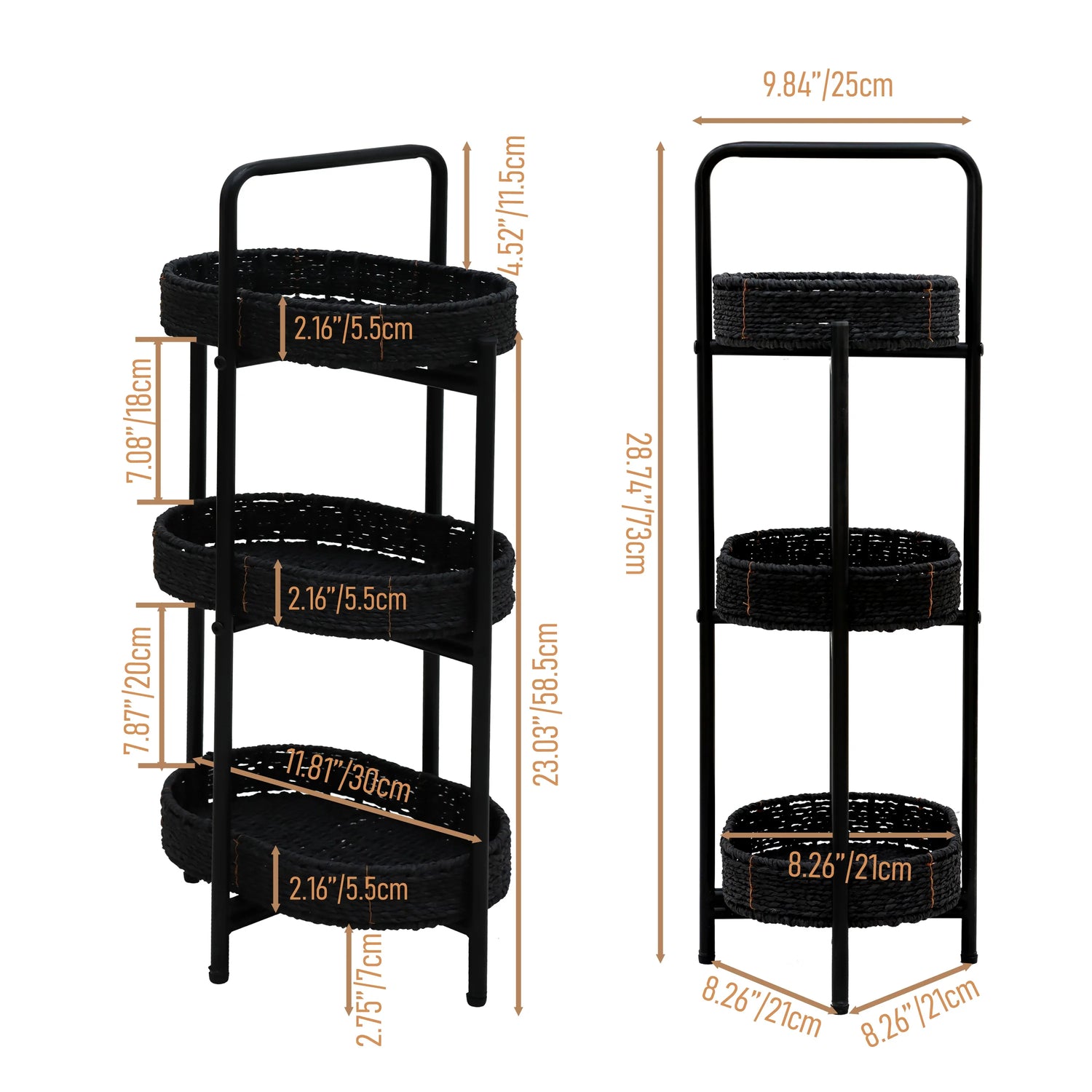Bring both style and functionality into your home with this modern 3-tier handwoven side table. Crafted with a sturdy black metal frame and elegant paper rope trays, this side table offers versatile storage and display options. Its slim, oval silhouette fits perfectly in small spaces, making it ideal as a living room side table, bedroom nightstand, or kitchen organizer. Each tier provides ample room to showcase decor, store books, or hold snacks and everyday essentials. The detachable woven trays double as portable baskets for added convenience, while adjustable feet ensure stability on uneven surfaces. Designed for easy assembly and durable indoor use, this side table blends rustic charm and contemporary design to elevate any room effortlessly. Upgrade your home organization and style with this multifunctional side table today.