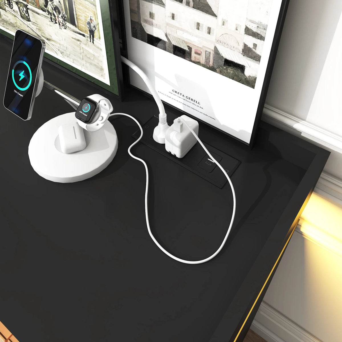 • Contemporary Minimalist Design: Enhances any room with sleek white and black finish.