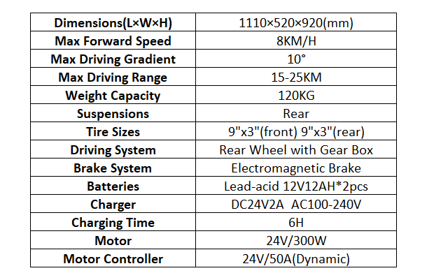 Battery Type: Lead-acid 12V12AH x2 pcs