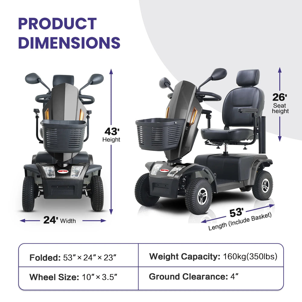 Heavy Duty Metal Mobility Scooter With Pneumatic Tires - Omega Lifestyles