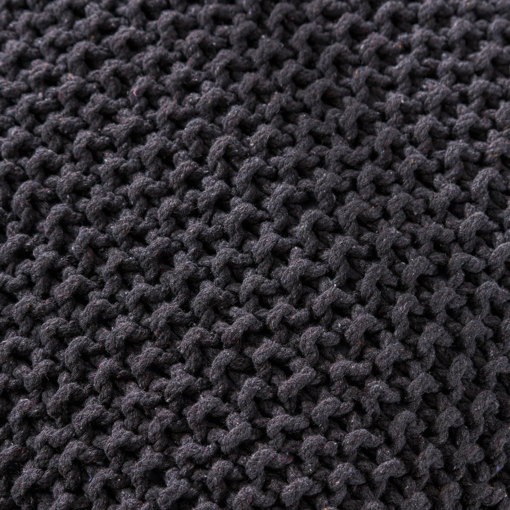 This dark grey knitted cotton pouf offers versatile seating and footrest comfort with handcrafted details, perfect for living rooms or bedrooms. Lightweight and easy to store, it adds functional style to any space without assembly required.