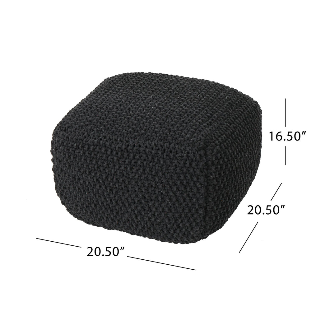 Add a stylish and functional touch to any room with this dark grey knitted cotton pouf cube. Perfect for putting your feet up after a long day or providing extra seating for guests, this versatile piece combines comfort with practicality. Crafted from 100% cotton thread, it features hand-knitted details that bring warmth and texture to your home décor. With compact dimensions of 20.5 inches wide by 20.5 inches deep and 16.5 inches high, it easily fits into corners or next to your sofa or bed, making it simple to store when not in use. Lightweight yet durable, this pouf offers a cozy spot to relax while enhancing your interior style. Elevate your comfort and home arrangement today.