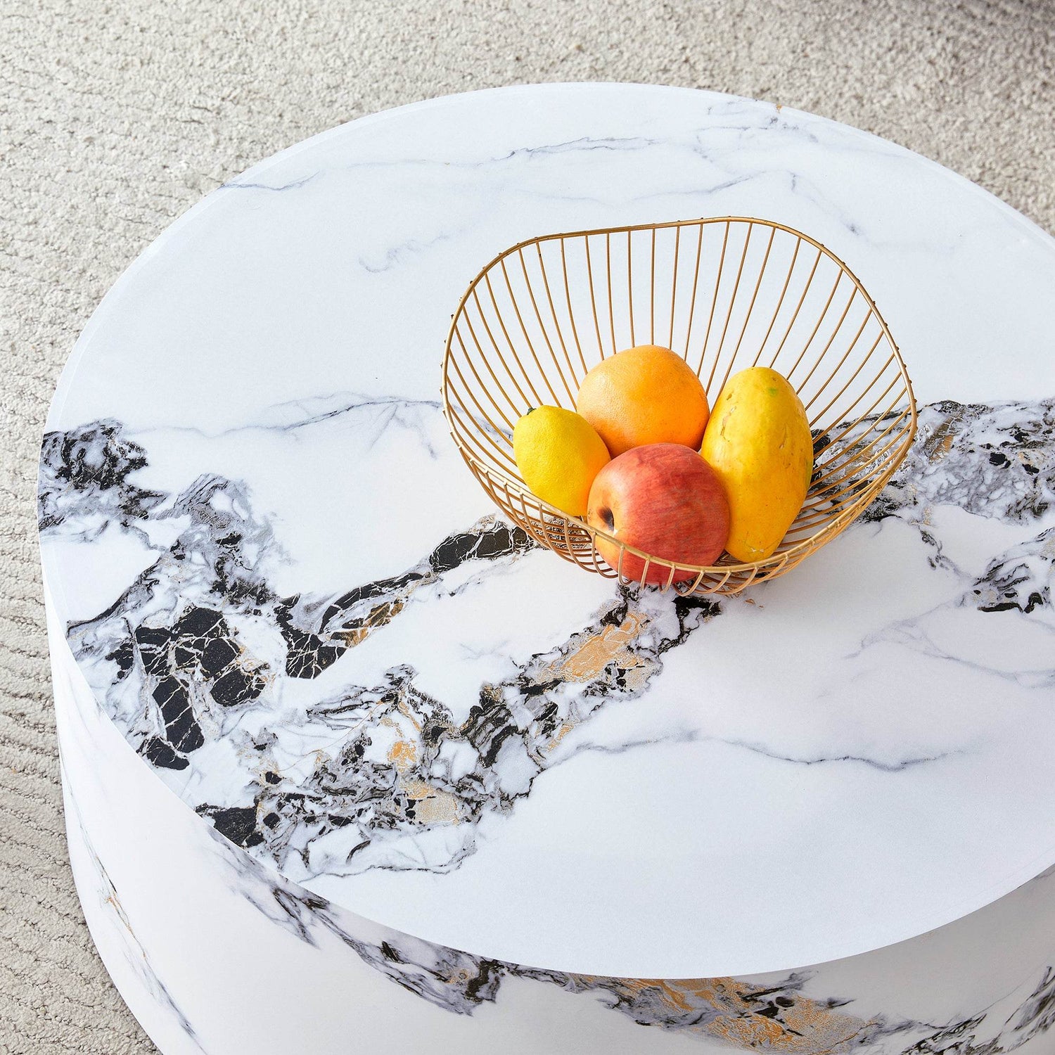 This cylindrical MDF table features a stylish patterned design that integrates seamlessly into various interior styles. Versatile for use as a coffee table, small dining table, workbench, or writing desk, it adds both practical functionality and elegant atmosphere to any space.