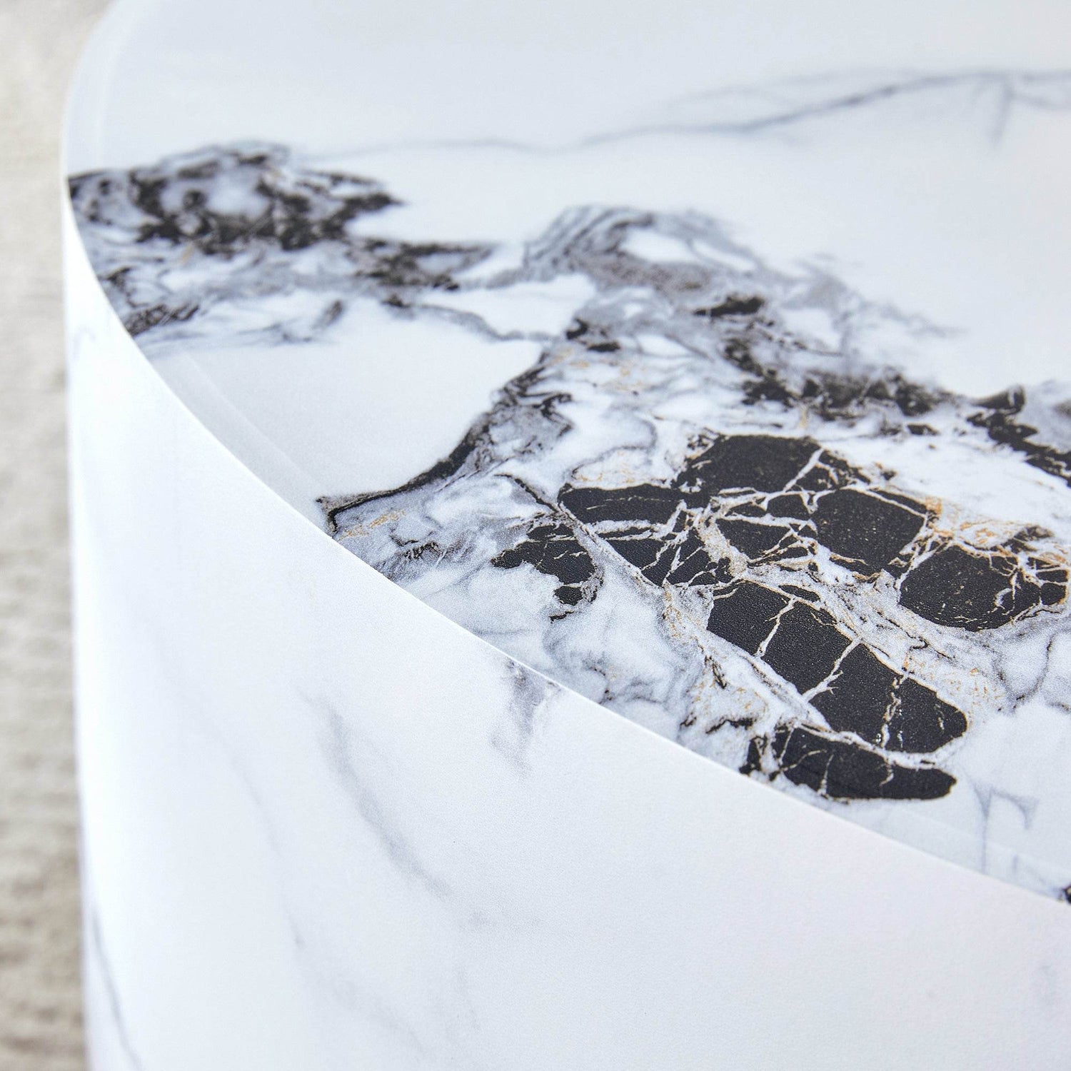 12-Inch White Patterned Cylindrical MDF Coffee Table
