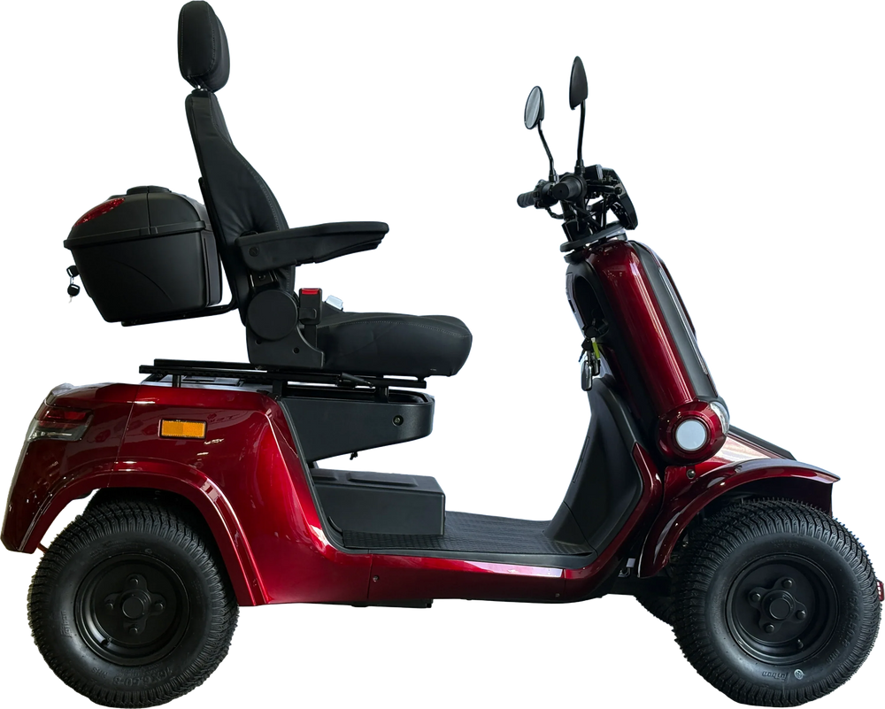 Designed for seniors and adults seeking enhanced freedom and independence, the HS4W-E4R mobility scooter delivers powerful performance and long-lasting endurance. Constructed from durable ABS, rubber, and steel, this scooter offers stability and safety with its four large wheels and dual-brake system. Featuring a convenient smaller seat beneath the main seat, it enhances travel ease and comfort during outings. With an easy-to-read LCD display and a range of up to 21.7 miles, it supports your daily activities with confidence. The robust design and fast charging within 6–8 hours make it an ideal choice for reliable personal transport. Elevate your mobility and regain your lifestyle today.
