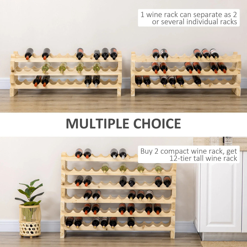 Organize and showcase your wine collection effortlessly with this natural wood, six-tier modular wine rack. Designed to hold up to 72 bottles, it offers generous storage while preserving your wine’s flavor by storing bottles horizontally—keeping corks moist and preventing oxidation. Its freestanding design fits perfectly in kitchens, pantries, or cellars, and the natural wood finish brings a rustic charm that complements any decor. Easily stackable and quick to assemble, this wine rack expands with your collection and creates an elegant, space-saving wine cellar right at home. Elevate your wine storage and enjoy your collection at its best today.