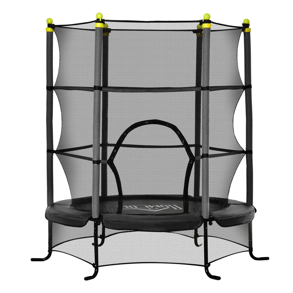 Encourage active play with this 5.3-foot (64-inch) indoor trampoline designed specifically for kids aged 3 to 10. Crafted with durable steel and covered in protective foam sleeves, it ensures a safe bouncing experience while standing up to daily use. The trampoline features a high-strength safety enclosure attached directly to the jumping mat with thick padded poles to prevent falls. Its innovative spring-free bungee design offers a gentle yet lively bounce that’s gentler on little bodies. Lightweight and portable, this trampoline can be enjoyed both indoors and outdoors, making it perfect for year-round fun and exercise. Give your child a safe space to jump, play, and build coordination—elevate their active playtime today.