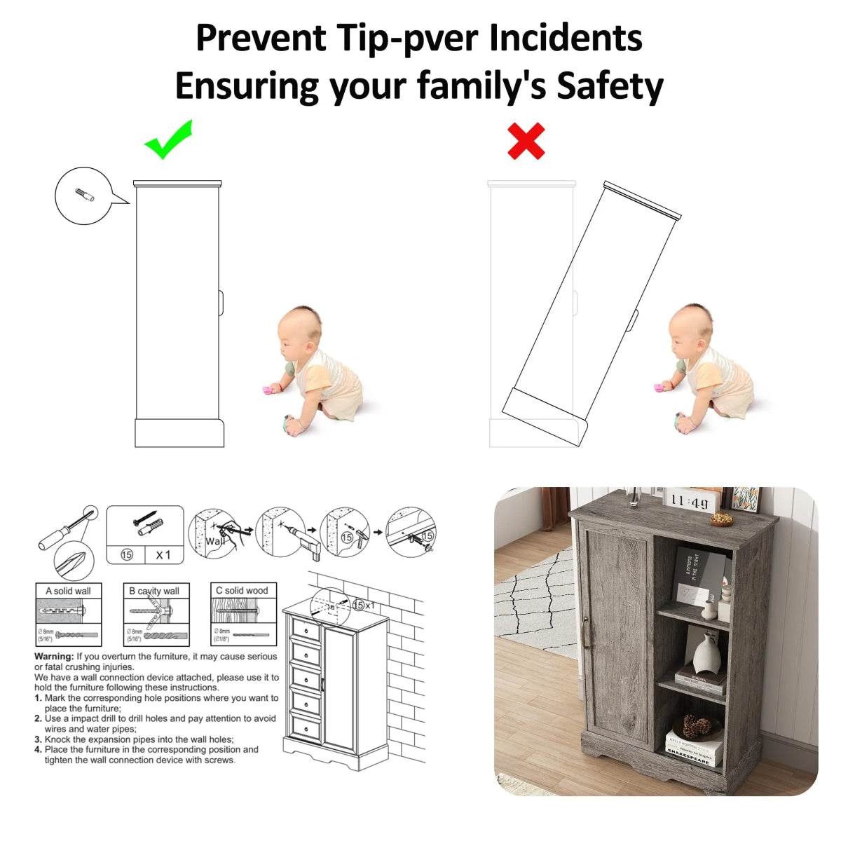 • Secure Anti-Tip Device: Wall mounting hardware included to prevent tipping and improve child safety.