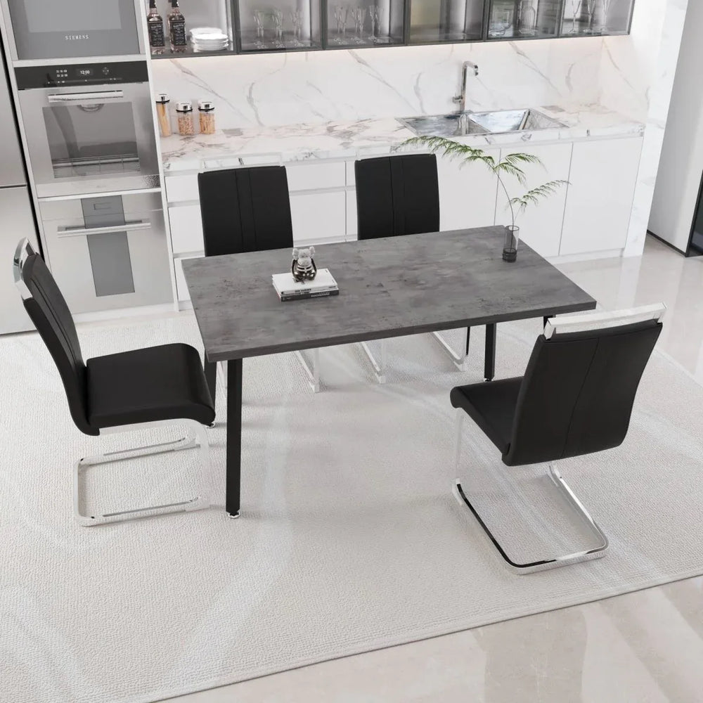 Bring style and versatility to your dining room with this modern 5-piece dining table set. The expandable square table adjusts from 55 to 71 inches, comfortably seating 4 to 6 people—perfect for intimate family meals or lively gatherings. Crafted with a smooth MDF tabletop and sturdy metal legs, it offers lasting durability and easy maintenance. The C-shaped tubular chairs, upholstered in premium faux leather, provide cushioned comfort and ergonomic back support for extended seating. Its sleek black and gray color scheme complements contemporary and industrial decor styles, making it a practical yet stylish addition to your kitchen or dining area. Quick and simple assembly means you’ll be enjoying your new dining set in no time. Elevate your meals and host with confidence today.