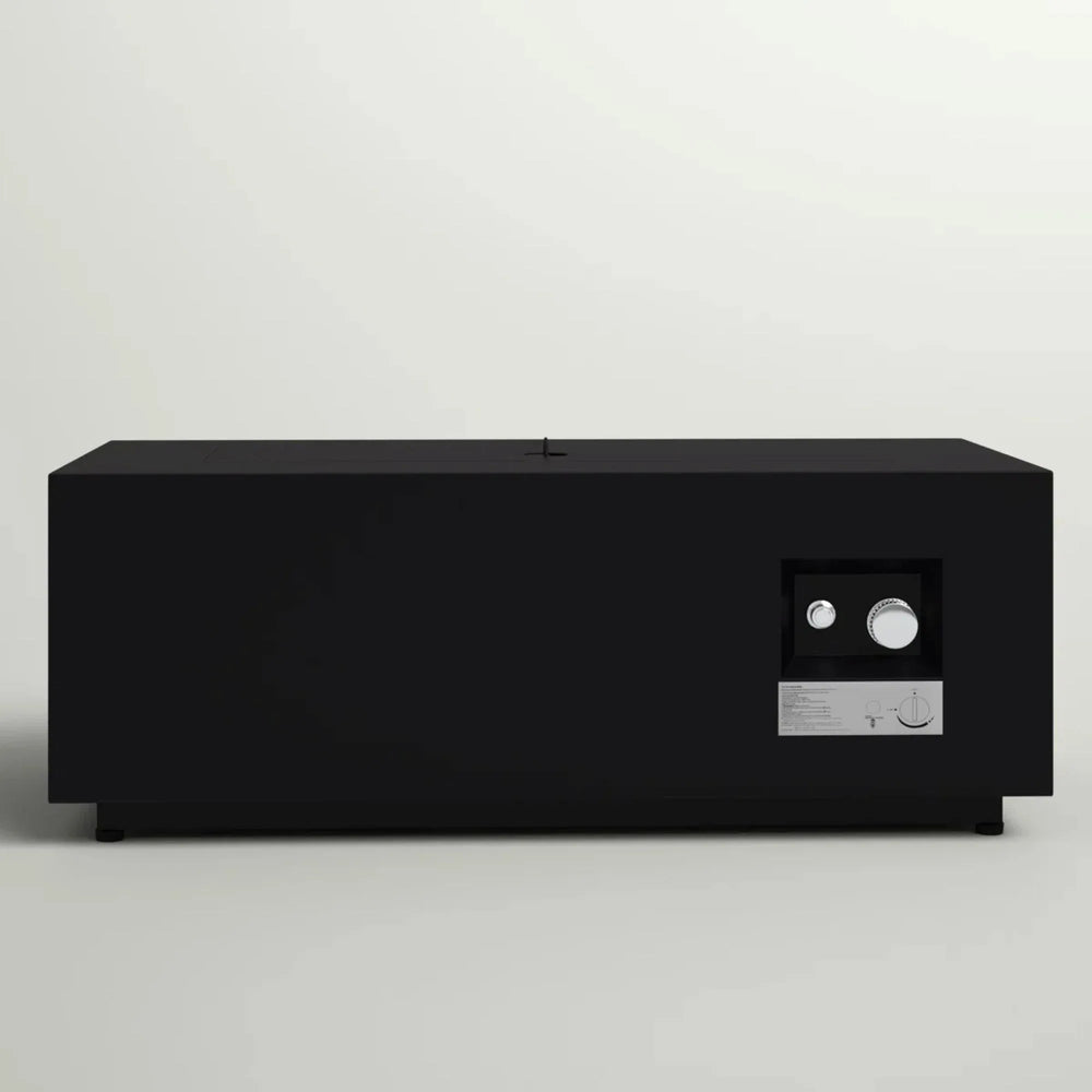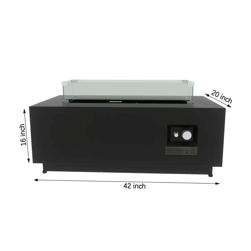 Experience cozy warmth and modern style with this sleek outdoor fire pit table. Crafted from durable steel with a powder-coated black finish, it’s designed to withstand the elements while adding a contemporary touch to your patio or garden. The built-in stainless steel burning area offers a powerful 50,000 BTU flame fueled by propane, with an option for natural gas conversion (conversion kit sold separately). Transparent glass shields surround the fire pit, diffusing the warm glow and creating an inviting ambiance for gatherings. With easy push-button ignition and adjustable flame controls, you can customize the fire to your perfect heat level. The included stone filler and protective lid help maintain cleanliness and style when not in use. Elevate your outdoor relaxation and entertainment today.
