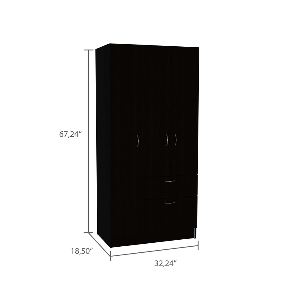 • Compact Dimensions: Armoire measures 18.5 inches (47 cm) deep, 32.2 inches (82 cm) wide, and 67.2 inches (171 cm) tall, fitting neatly into bedrooms.