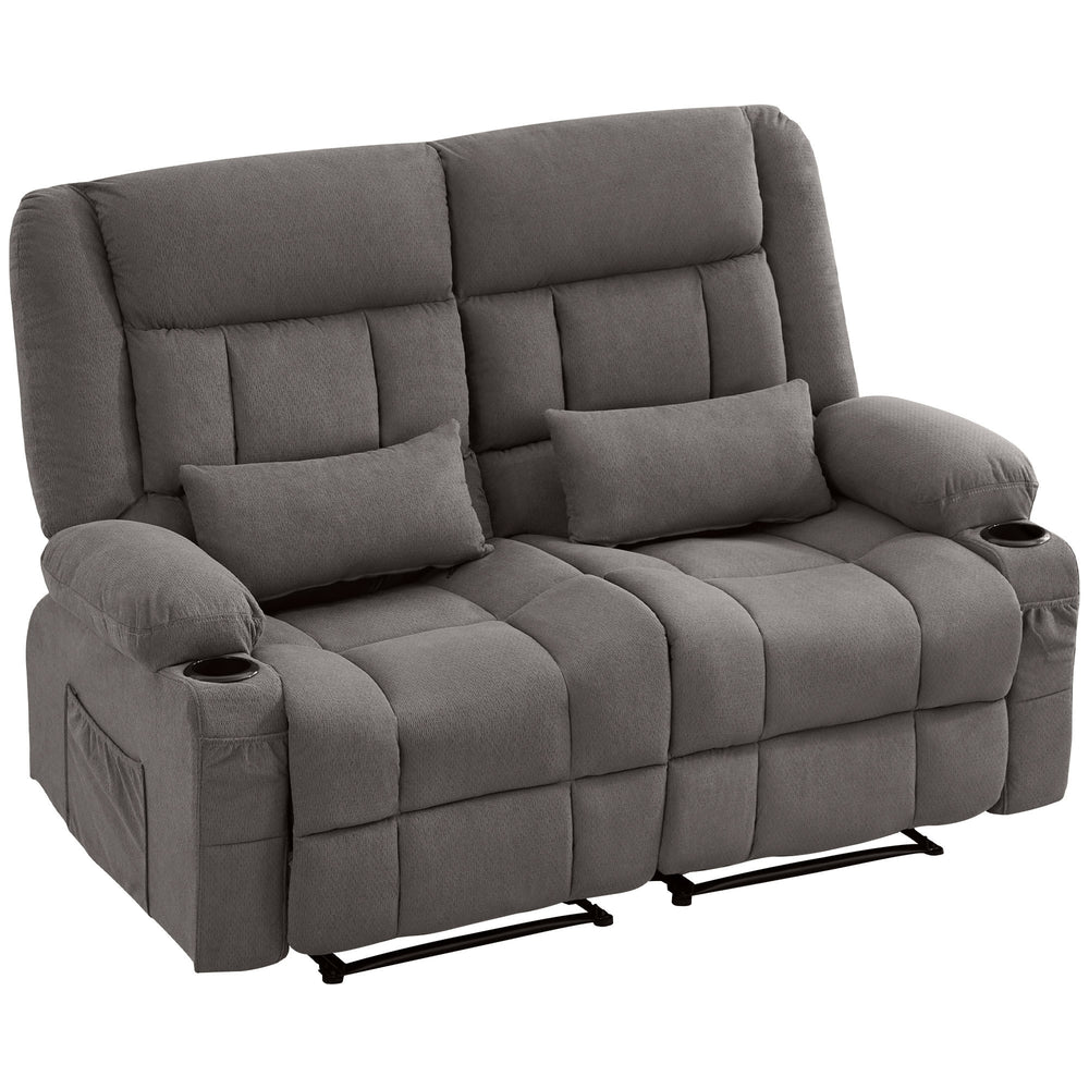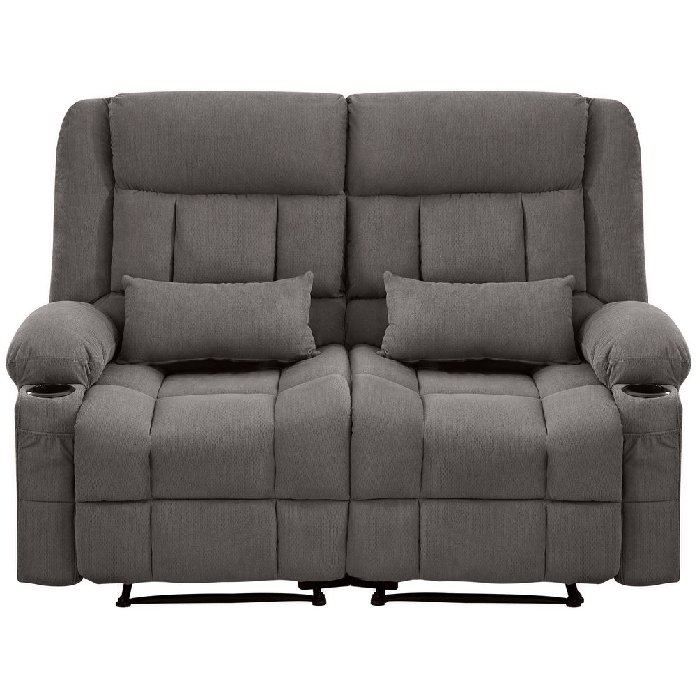 Manual Reclining Oversized Soft Fabric Loveseat With Cup Holders