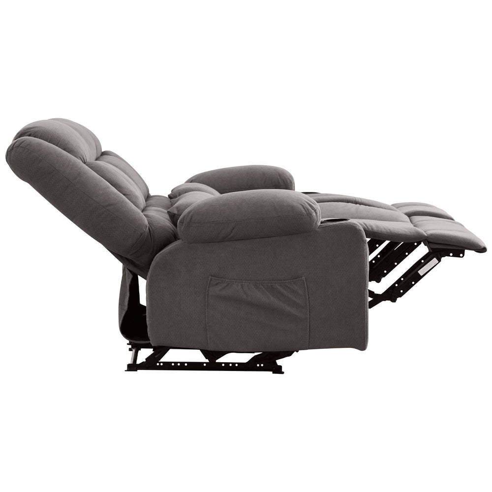 Relax in style with this modern oversized recliner loveseat, designed for ultimate comfort in your living room or primary living space. Upholstered in breathable, premium fabric with a soft plush seat, it offers a cozy seating experience all year round. The manual reclining handle allows you to effortlessly adjust the backrest up to 150° and activate the built-in footrests for full-body relaxation. Crafted with a durable metal frame and square arms, this loveseat supports up to 600 lbs, providing stability and long-lasting use. Thoughtful features like dual cup holders and a convenient side pocket keep your essentials close at hand, enhancing your lounging experience. With quick assembly and elegant contemporary styling, this recliner loveseat is the perfect blend of function, comfort, and modern design. Elevate your relaxation today and transform your living space into a cozy retreat.