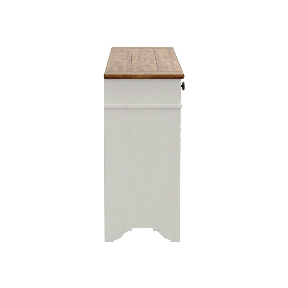 Bring farmhouse charm and practical storage to your living space with this expertly crafted Brown and White Server. Made from durable engineered wood, it showcases a beautiful brown and white finish that adds warmth and character to any room. With spacious dimensions of 61.5 inches wide, 17 inches deep, and 36 inches high, this server fits perfectly in your dining or living area, providing ample surface and storage space. Its sturdy construction offers long-lasting support, while the easy-care design lets you focus on what matters most. Quick to assemble and versatile in style, this server seamlessly blends functionality and aesthetic appeal. Elevate your home’s organization and style today.