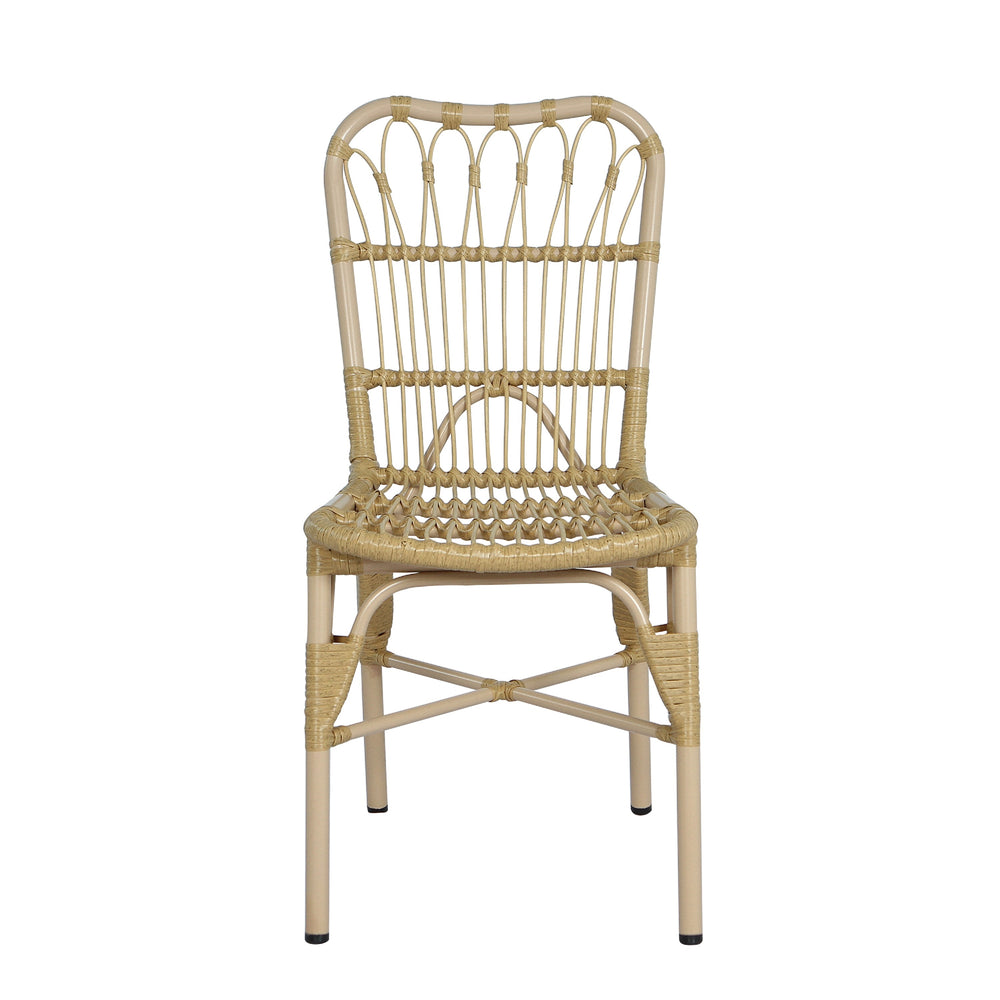 Enhance your outdoor living space with this stylish set of 2 patio dining chairs crafted from hand-woven PE rattan and a sturdy iron frame. Designed for garden and patio use, these chairs offer lasting strength with a rust-resistant, UV-protected iron structure that withstands sun exposure without fading or weakening. The natural rattan weave provides breathable seating that complements any modern outdoor décor, while the compact 16" W x 21.5" D x 35" H (40.6 x 54.6 x 88.9 cm) size fits perfectly around any dining table. With no assembly required, you can set these chairs out right away to enjoy comfortable, reliable seating for up to 400 lbs. Their weather-resistant materials ensure easy maintenance—simply wipe clean with mild soap and a cloth. Elevate your patio experience today with these elegant, durable outdoor chairs designed for effortless style and comfort.