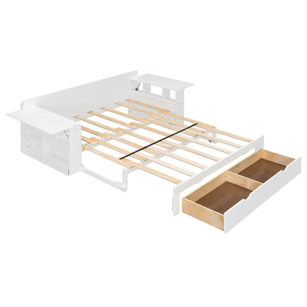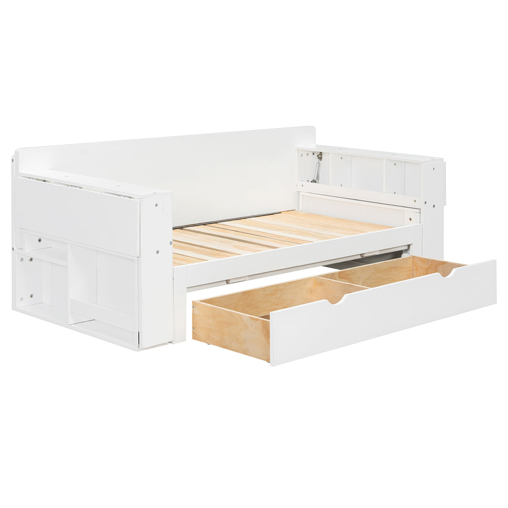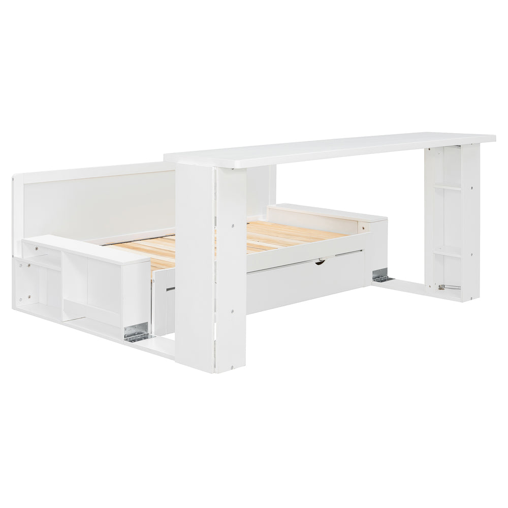 Full Size Multifunctional Wood Daybed With Desk Storage