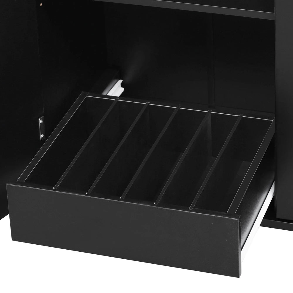 - Spacious Storage: Two deep drawers plus two cabinets with adjustable shelves.
