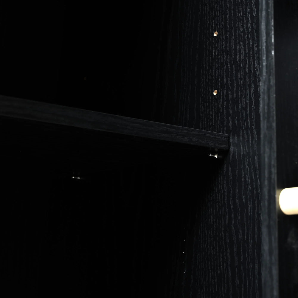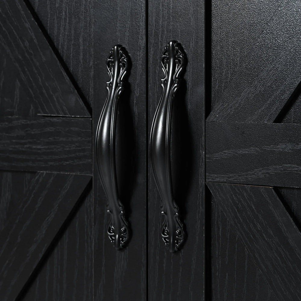 - Farmhouse Style Design: Classic black wood grain with X barn doors and retro metal accents.