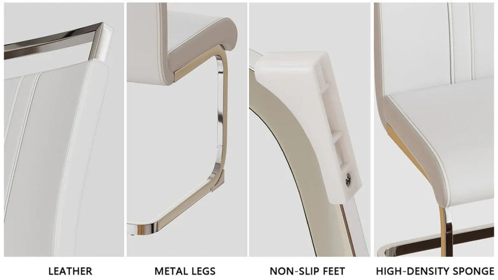 - Ergonomic PU Chairs: Soft, easy-to-clean artificial leather seats paired with silver plated metal legs.
