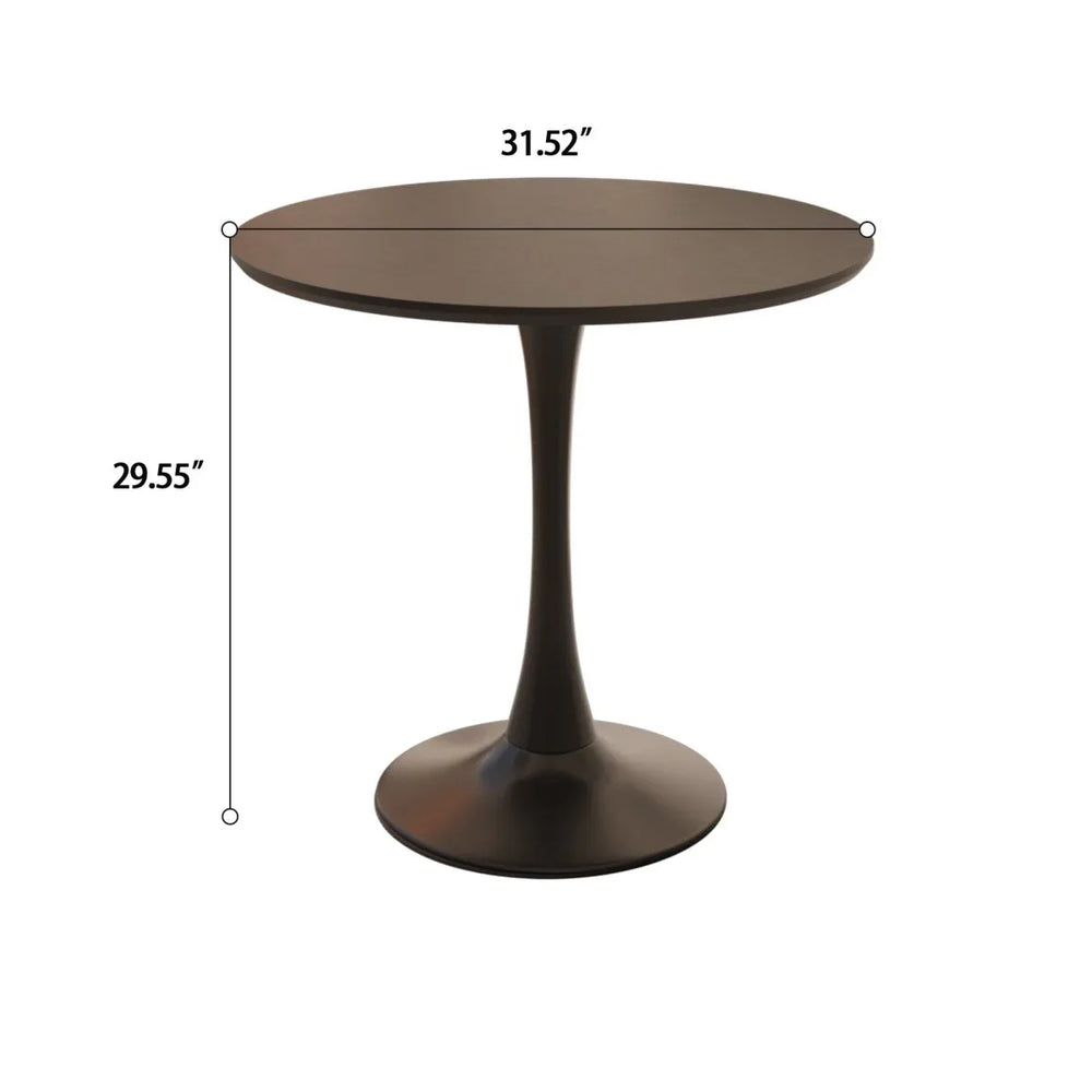 - Round Tulip Table: 31.5 inches diameter with a sleek black MDF tabletop.