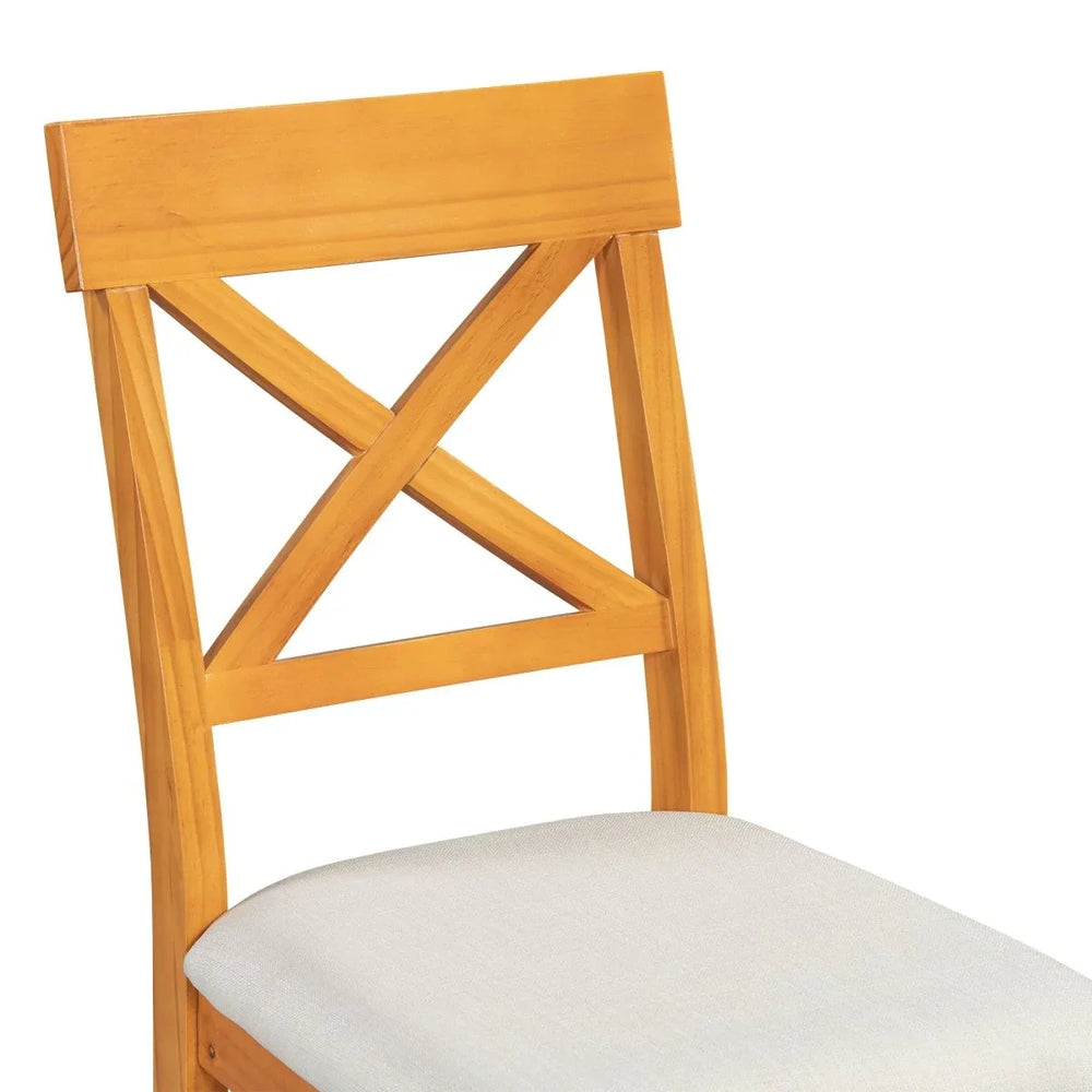 - Cross-Back Upholstered Chairs: Enhanced comfort with foam-filled cushions and linen fabric.