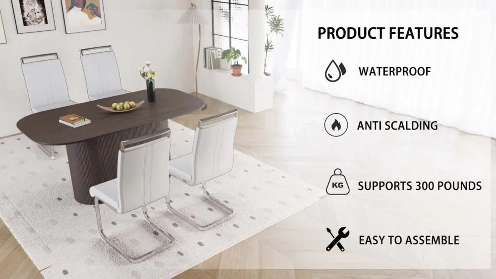 • 5-Piece Dining Set: Includes 1 MDF table and 4 PU armless dining chairs.