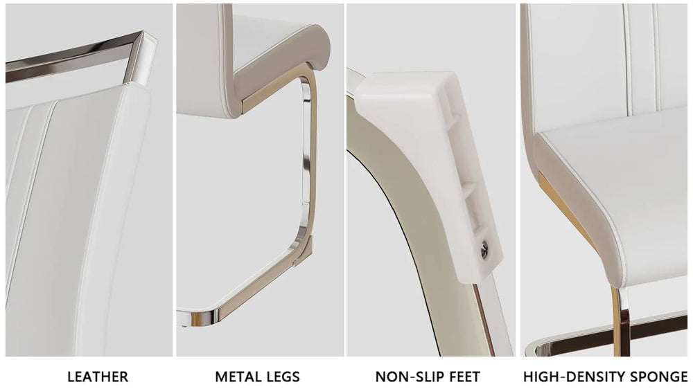 - Comfortable PU Leather Chairs: Ergonomically designed with silver-plated metal legs.