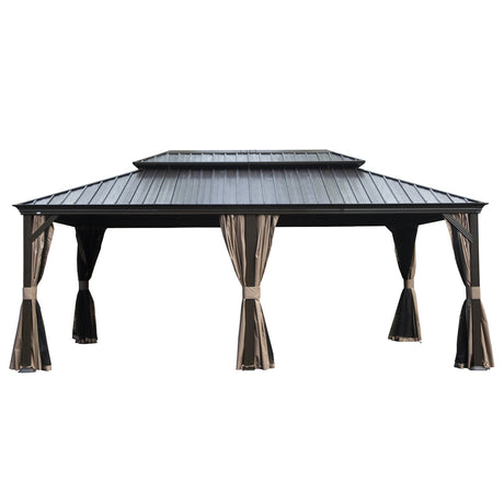 12x16 Hardtop Metal Gazebo With Double Roof Canopy