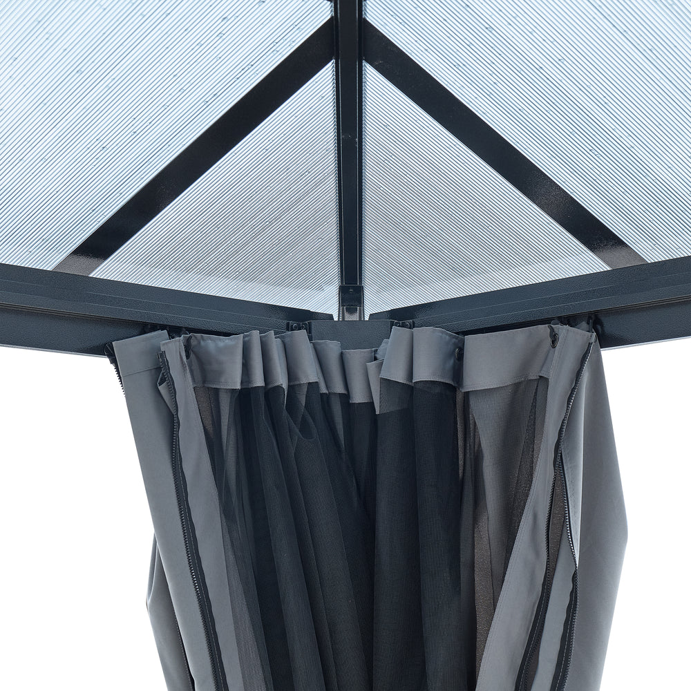 12x16-Foot Steel Polycarbonate Hardtop Gazebo With Curtains