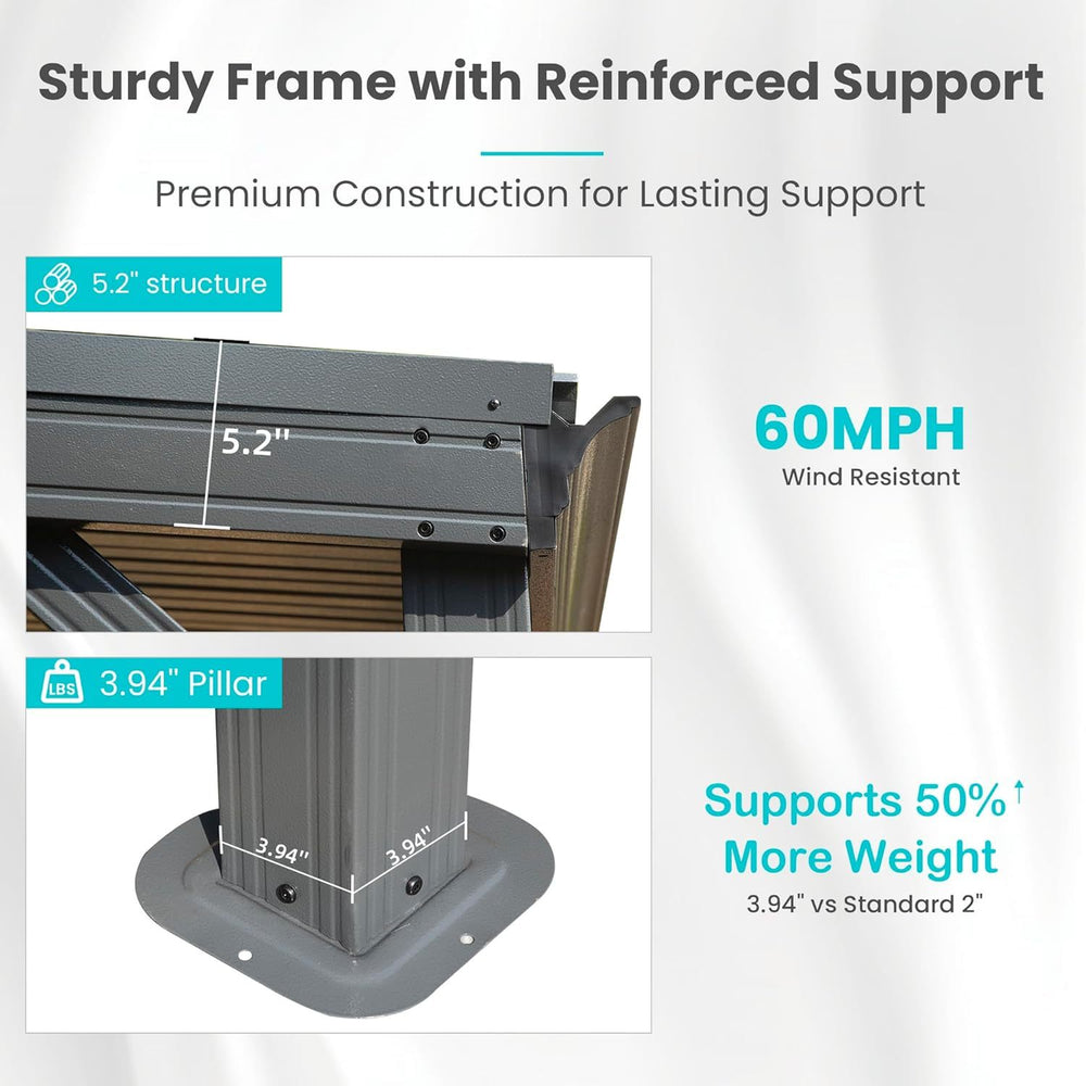 - Spacious 10' x 10' Size: Offers a generous 120" length by 120" width of sheltered outdoor space.
