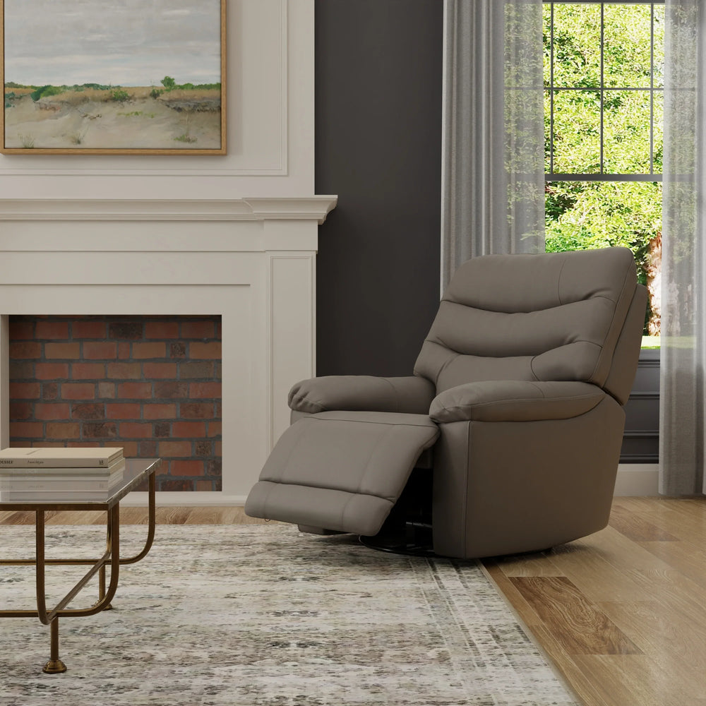 Light Gray Top Grain Leather Swivel Glider Recliner