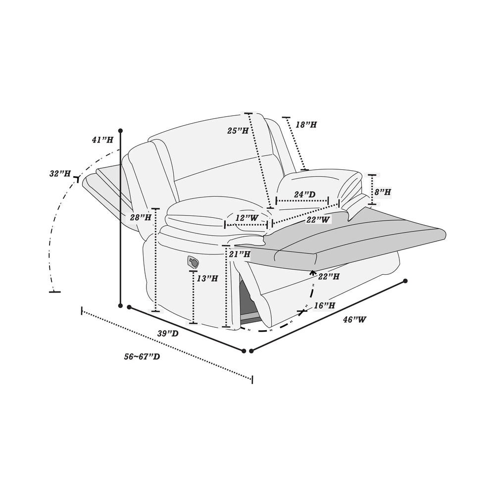 - Manual Glider Recliner: Smooth rocking motion and easy reclining with side handle