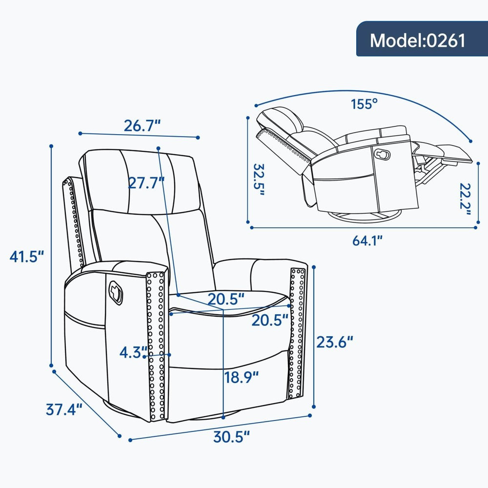 - 360° Swivel and Rocking Recliner: Smooth swivel and gentle rocking for enhanced comfort.
