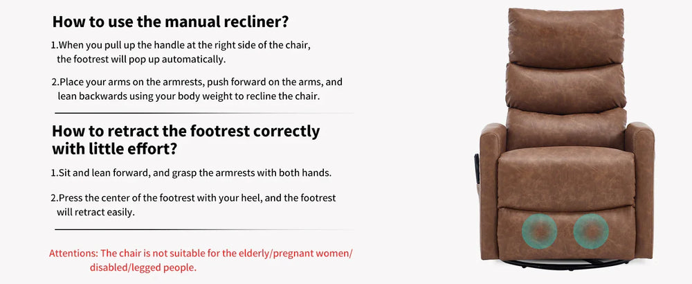 • 360° Swivel and Rocking Recliner: Smooth rotation and gentle rocking enhance relaxation.