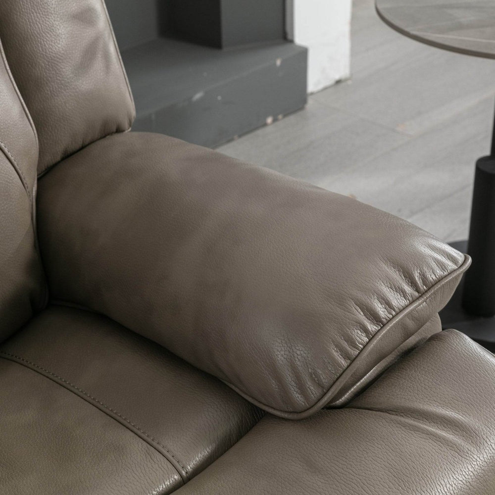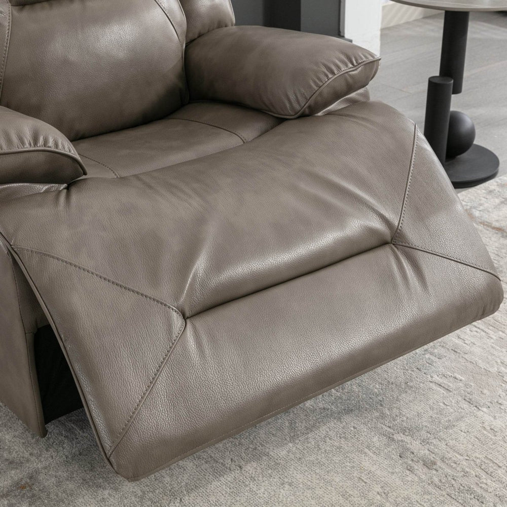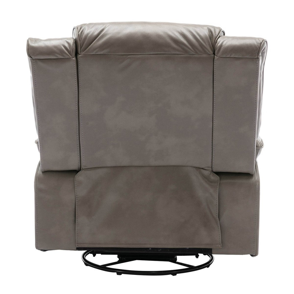 Unwind in style and comfort with this versatile manual recliner chair, perfect for your living room or bedroom. Featuring smooth 360-degree swivel and gentle rocking motions, it helps soothe your body and mind after a long day. The recliner adjusts effortlessly between 110° and 150°, allowing you to find your ideal seating position with the easy-to-use handle. Upholstered in durable, waterproof grey leather gel, it’s both stylish and simple to maintain. Thick foam padding and wider armrests provide plush comfort for extended use, while the integrated LED light strip adds a cinematic ambiance while safely illuminating dark rooms. Solid iron and plywood framing with a sturdy metal footrest ensure this recliner offers lasting support and stability. Elevate your home relaxation experience today with this modern recliner chair.