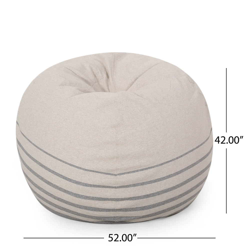 Sink into relaxation with the Bohemio 5 Foot Rounded Bean Bag, perfect for adding casual comfort and style to any living space. Its spacious 52-inch diameter and 42-inch height provide an inviting spot to lounge, read, or unwind. Crafted from soft, high-quality fabric in a natural grey striped pattern, this bean bag complements a wide range of décor. Filled with high-density foam pieces, it offers lasting softness and superior support that molds to your body’s shape. The removable cover features a childproof zipper, making it easy to clean or swap out for fresh looks. Lightweight yet durable at 48 pounds, it’s ideal for bedrooms, family rooms, or creative spaces. Elevate your comfort and style today with this modern, versatile seating solution.