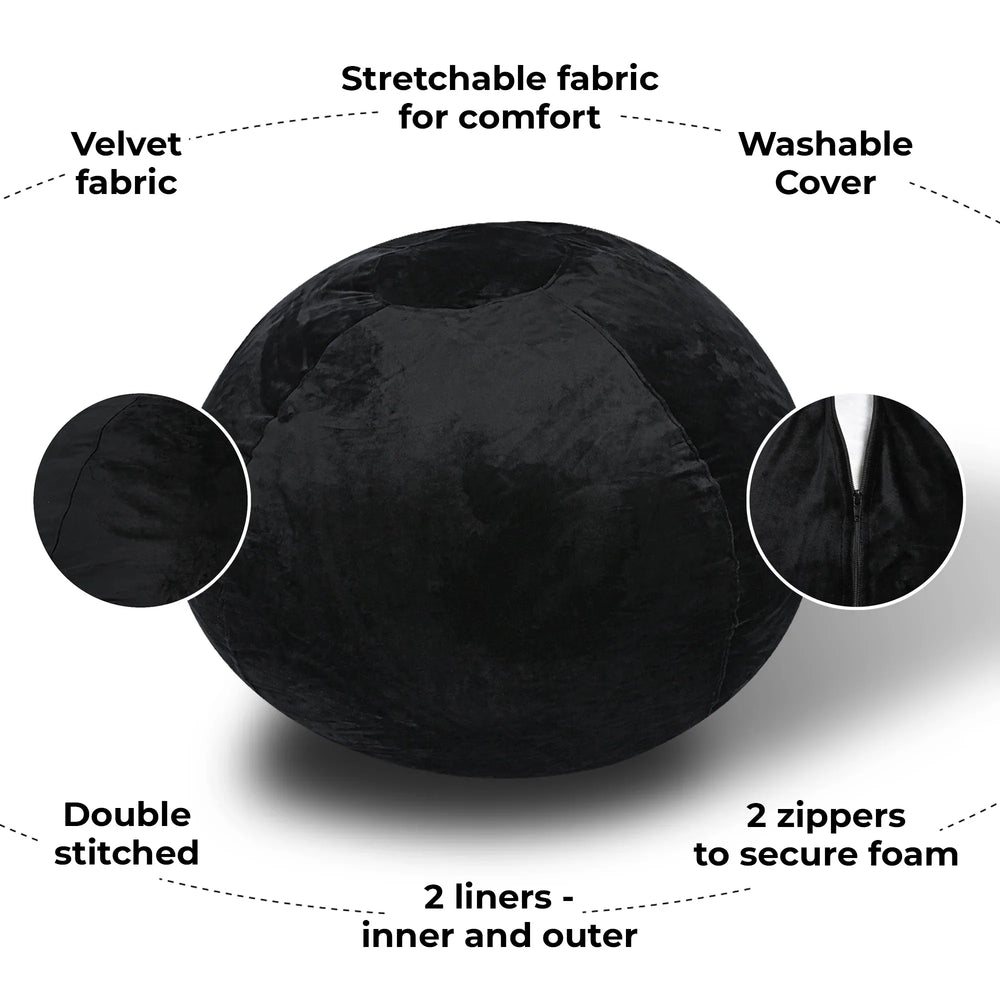 Sink into the cozy embrace of this 4-foot Minky Velvet Bean Bag Chair, crafted to bring plush comfort and stylish relaxation to any room. Filled with a premium blend of shredded foam and memory foam sourced from the USA, it molds perfectly to your body for superior support whether you're reading, gaming, or lounging. The soft, stretchable velvet cover offers a luxurious texture that’s gentle to the touch and invites you to unwind after a long day. Designed with durability in mind, this black bean bag features double-stitched seams and dual zippers for added strength and easy maintenance. Its perfect 45-inch diameter and 30-inch height make it an ideal cozy spot for both kids and adults, fitting seamlessly into bedrooms, playrooms, or living spaces. The removable, machine-washable cover ensures hassle-free cleaning, maintaining freshness over time. Elevate your relaxation today with this versatile, comfy floor chair that combines quality and style.
