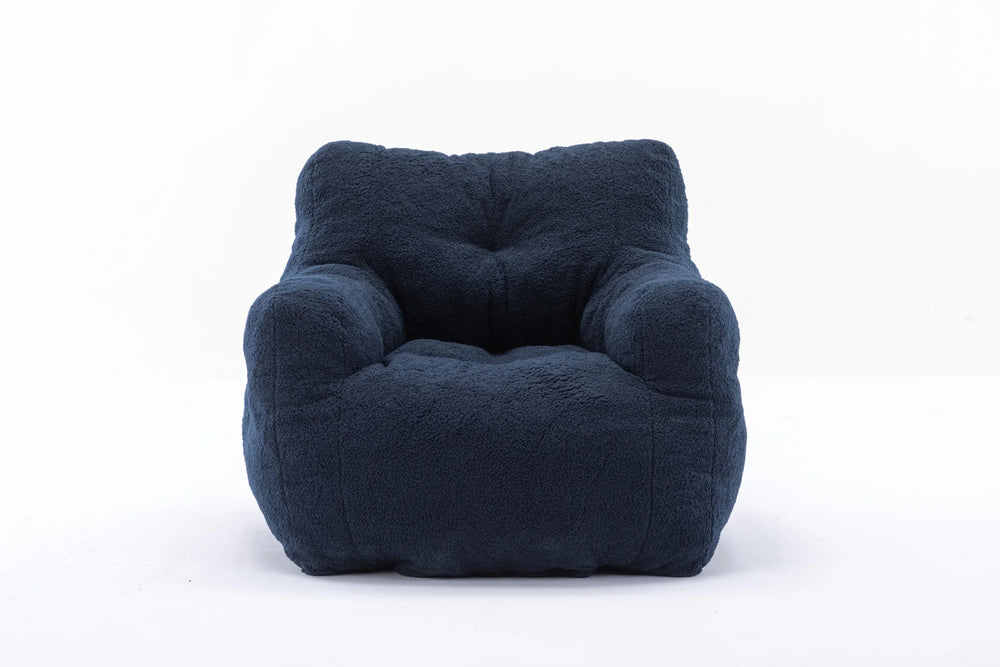 Soft Teddy Fabric Tufted Foam Bean Bag Chair Dark Blue