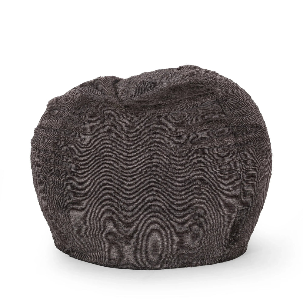 Rounded Faux Fur Foam Filled 3-Foot Bean Bag Chair Brown Beige