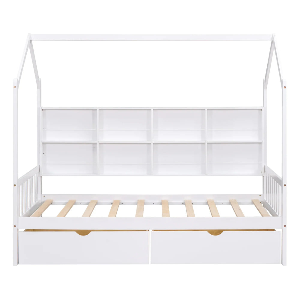 Twin Solid Wood Kids House Bed With Storage Drawers - Omega Lifestyles